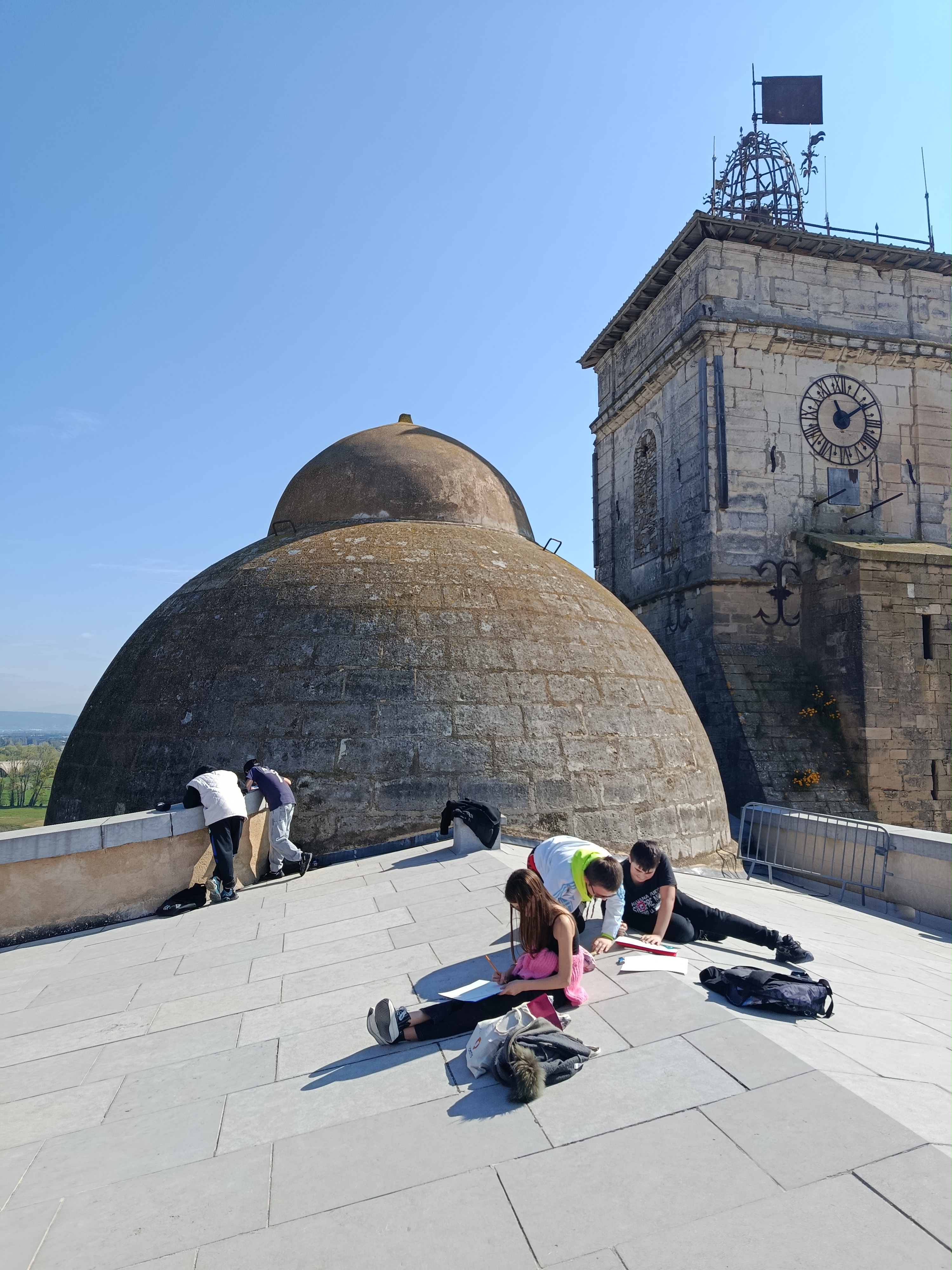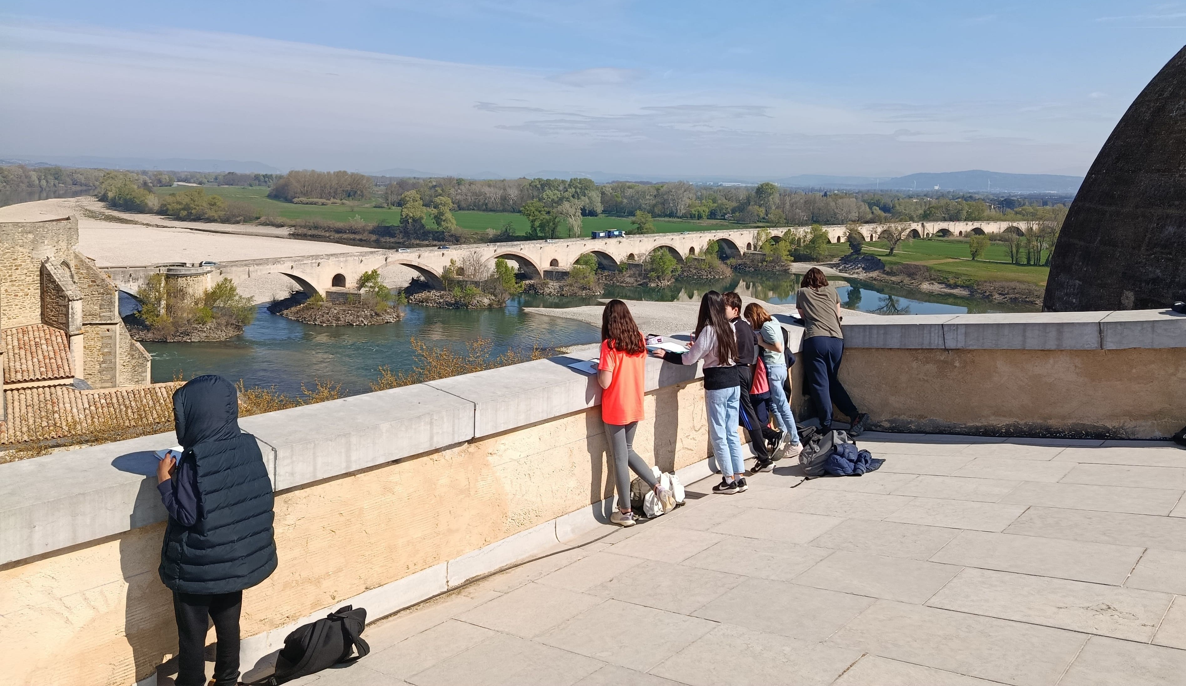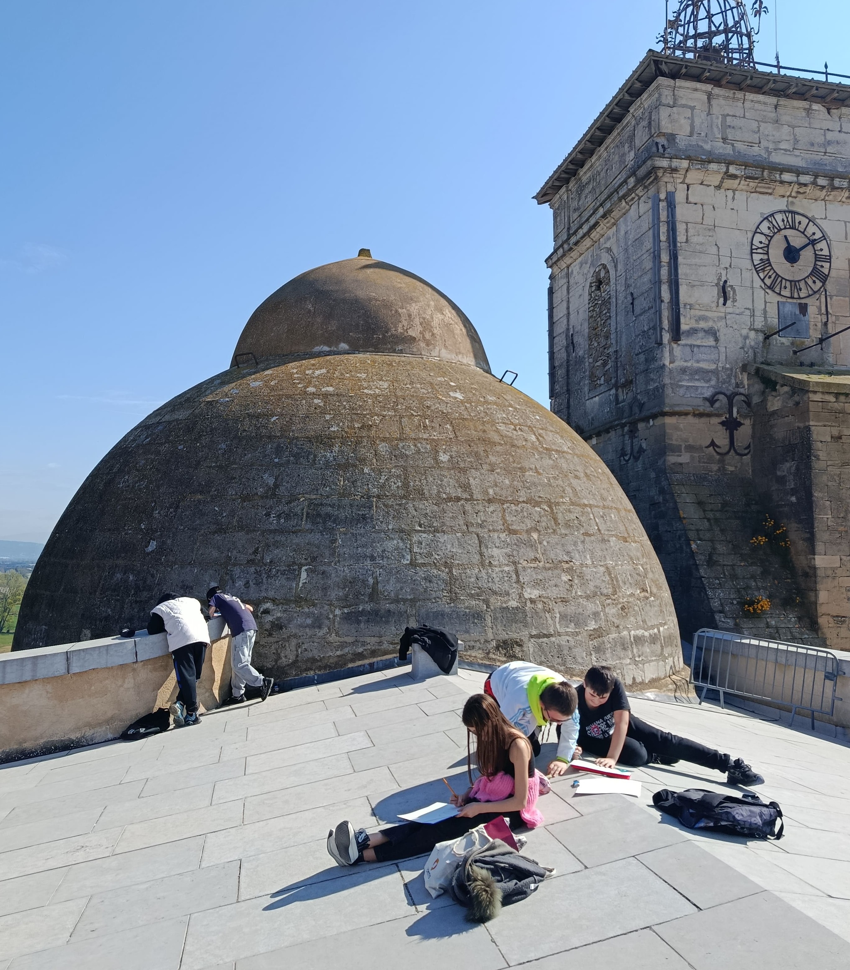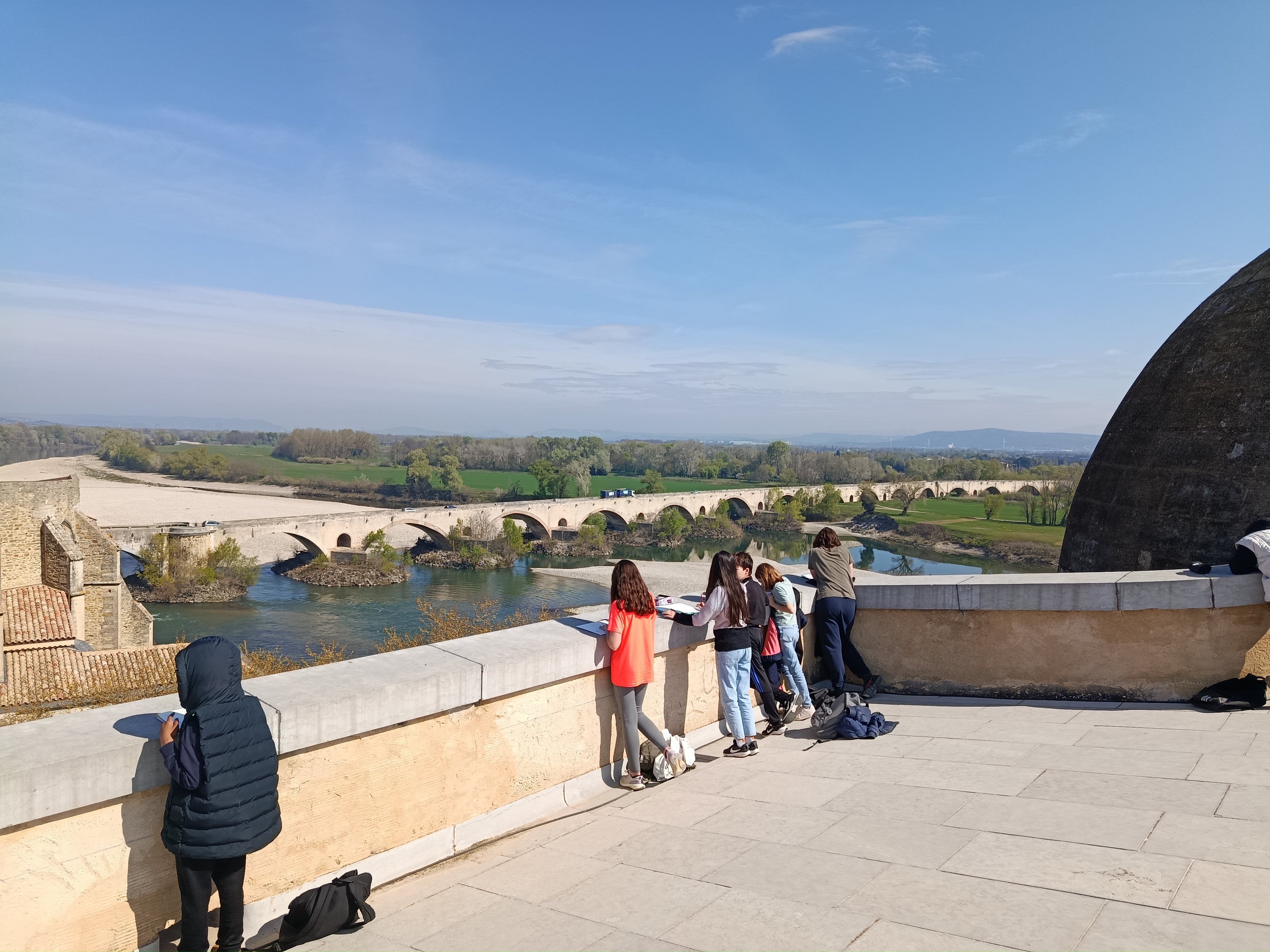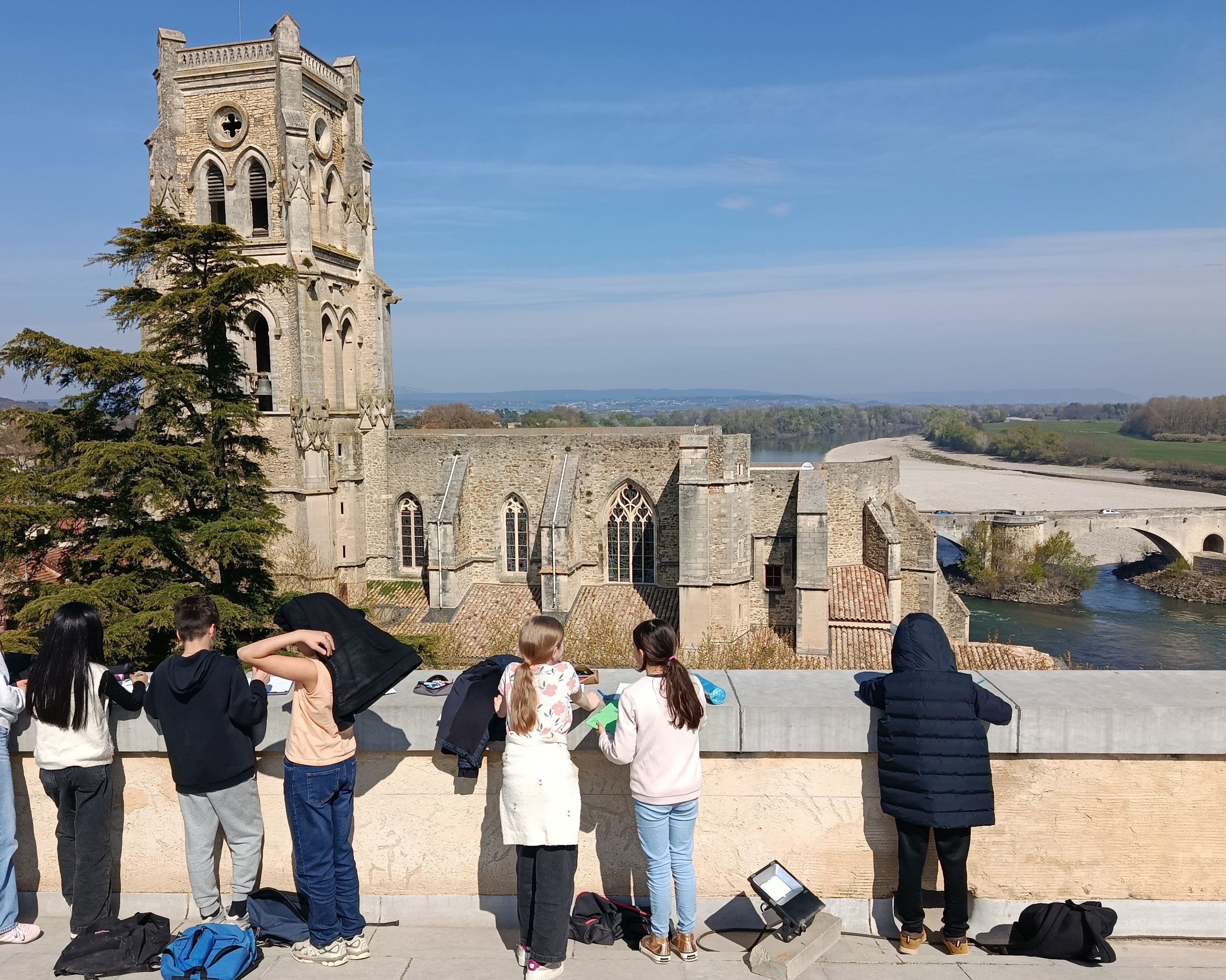 Grâce au partenariat avec le service culturel de la mairie de Pont-Saint-Esprit, les élèves de l'option art ont eu un accès VIP à la toiture du prieuré Saint- Pierre d'où ils ont pu réaliser des croquis qui seront ensuite ré-exploités en classe.